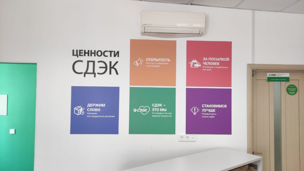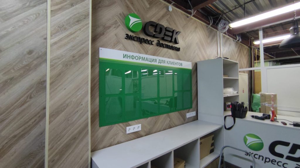 CDEK | Кривощековская 15к1 | Комплексное оформление интерьеров фирменной символикой разных форматов и способов изготовления