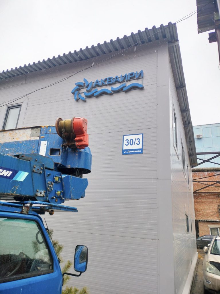 Изготовление и монтаж псевдообъёмного логотипа из акрила для компании по производству и продаже водолазного оборудования.